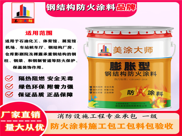 室外超薄型钢结构浦北防火涂料是一种由复合材料、阻燃材料、防火填料等组成,并选用最新型的阻燃剂、发泡、发炭、催化剂等加工而成的新型浦北防火涂料。该涂料涂层薄、用量少、耐火时间长,粘结力强,耐候、抗冲击、耐冻融性好。并具有较好的耐化工大气腐蚀性,涂层遇火时迅速膨胀增厚,形成发泡致密、均匀的隔热层,延长了耐火时间,从而达到防火保护作用。耐火时间根据等级不同可达0.50 h -2.00 h不等。